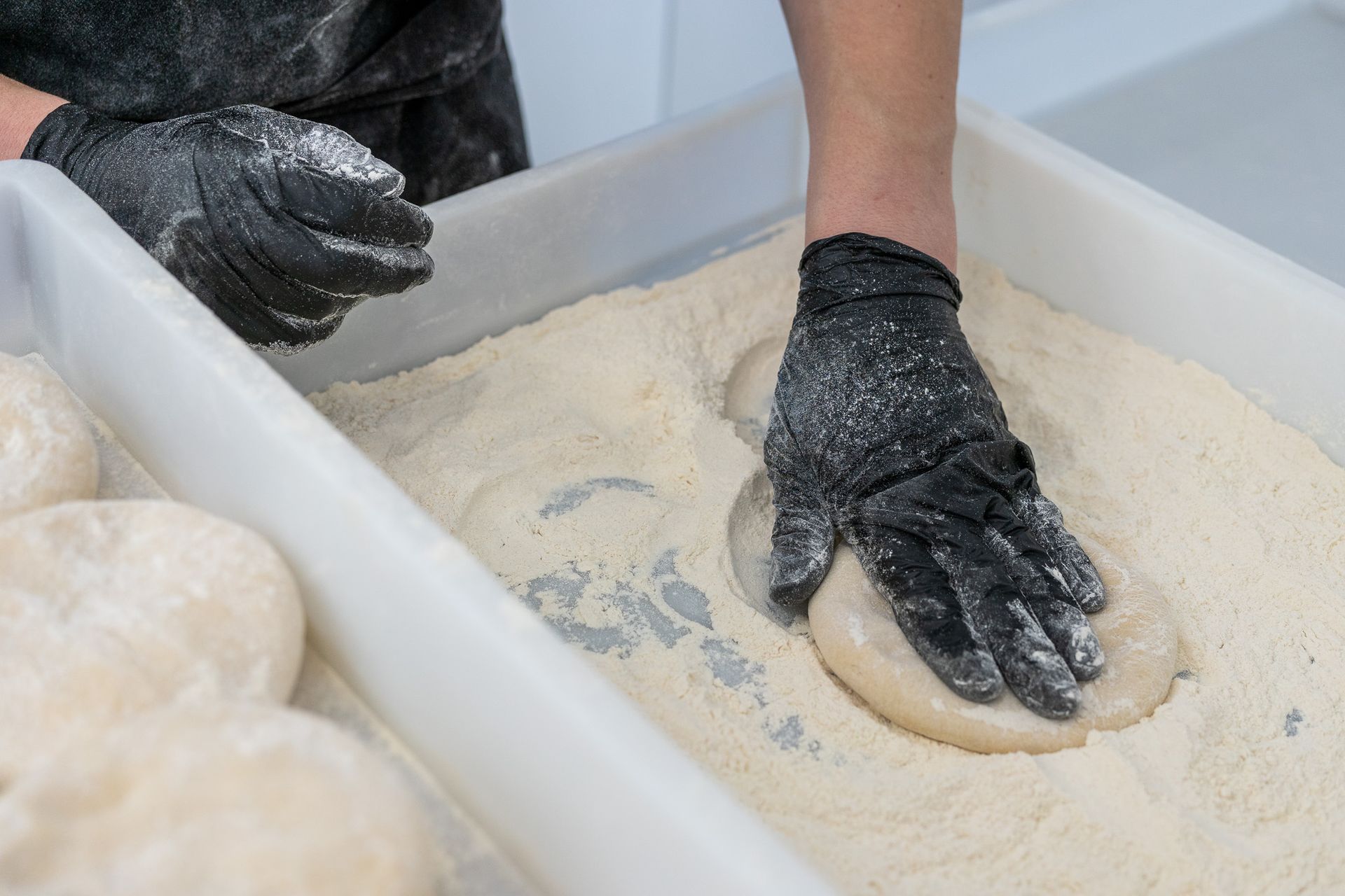 Unser Teig enthält nur das beste Bremer Mehl und kommt ganz ohne Zusätze aus. Wir nehmen uns Zeit und lassen unseren Teig mindestens 24 Stunden ruhen, damit er fermentieren und reifen kann. Auch nach dem Ausformen ruht unser Teig bis zu 48 Stunden auf den Pizzablechen, was für einen luftigen Teig mit etwas Dicke, aber einem krossen Boden und knusprigen Rand sorgt.